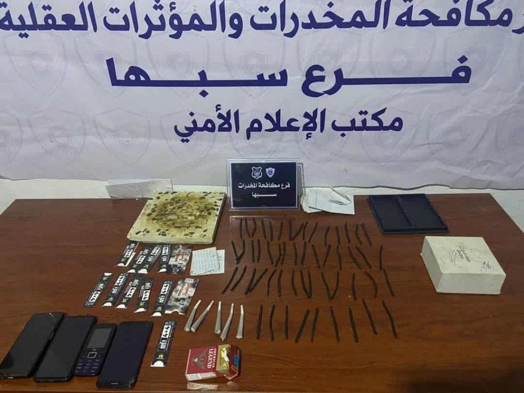 أعلنت إدارة مكافحة المخدرات والمؤثرات العقلية فرع سبها، عن إلقاء القبض على شخص يبلغ من العمر 39 عامًا، بعد نصب كمين محكم له أثناء محاولته بيع كمية من مخدر الحشيش.