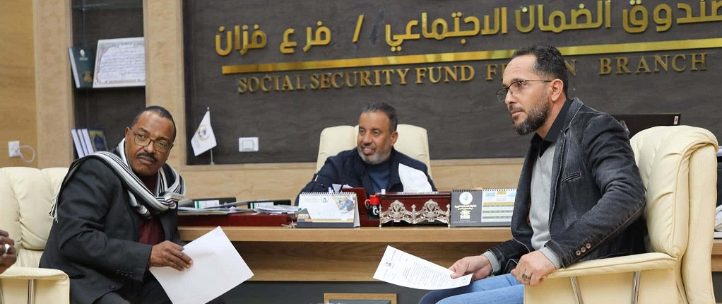 عُقد بديوان فرع صندوق الضمان الاجتماعي فزان، اجتماع بمكتب مدير الفرع، ضمّ رئيس قسم الإعلام والتوعية الضمانية وأعضاء اللجنة المُشكَّلة لإدارة صفحات التواصل الاجتماعي الخاصة بالفرع.