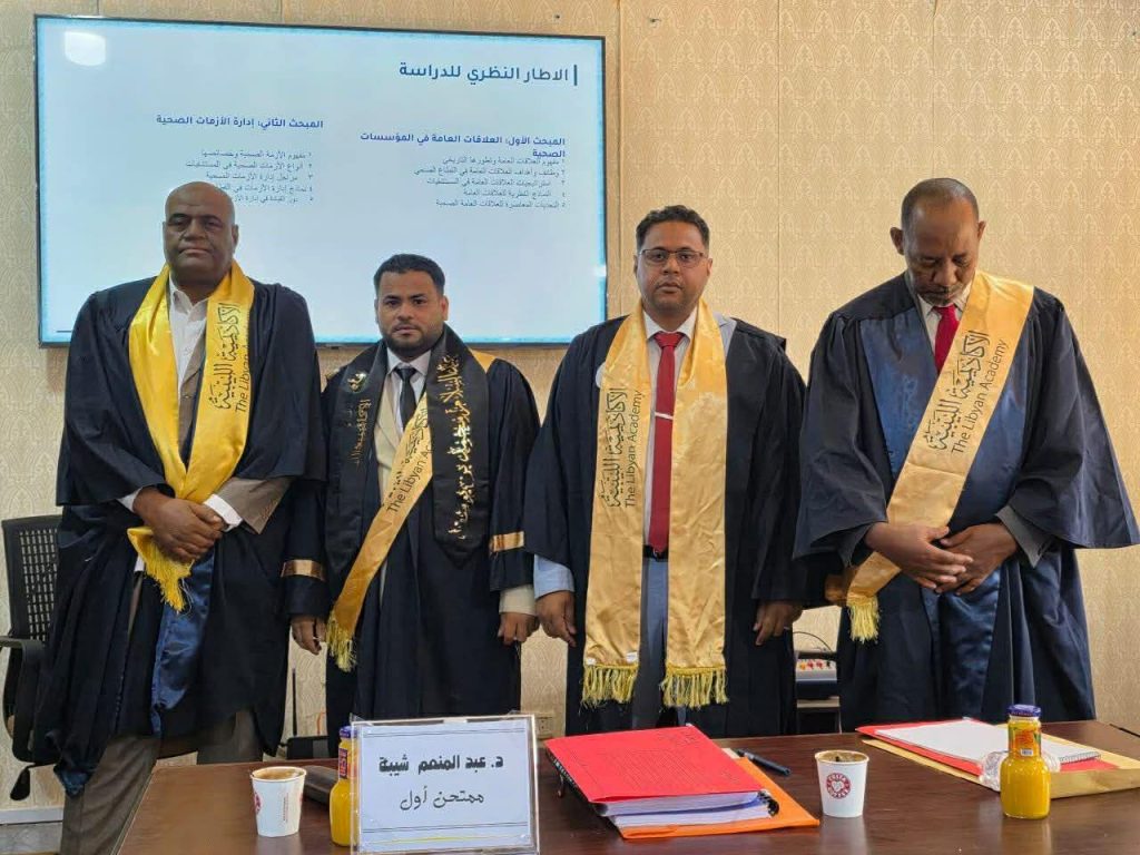 وجاءت الرسالة بعنوان:«دور العلاقات العامة في إدارة الأزمات الصحية بالمستشفيات العامة» (دراسة ميدانية على المستشفيات الحكومية في وادي الشاطئ – ليبيا)