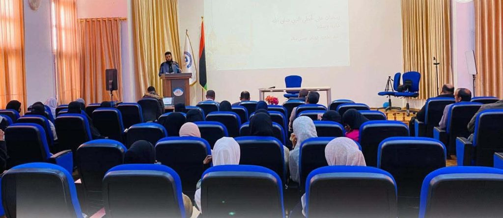 نظم قسم الدراسات الإسلامية بـكلية التربية بجامعة وادي الشاطئ، ندوةً علميةً بعنوان: ” قبسات من شهر رمضان “، وذلك بمسرح المرحوم إمحمد العجيلي بالكلية.