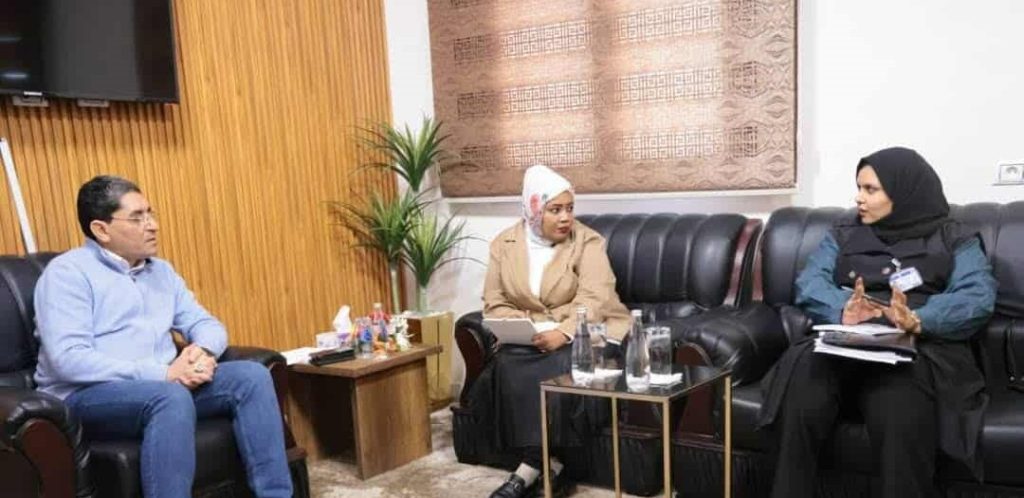 التقى وزير العمل والتأهيل عبدالله الشارف مع رئيس مؤسسة بيت فزان عائشة يوسف بمكتب العمل والتأهيل سبها وبحضور مدير مكتب دعم وتمكين المرأة رجاء عمران ومدير مكتب العمل والتأهيل سبها علي إمحمد.
