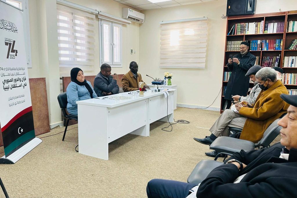 احتضنت مكتبة اليونيسكو في مدينة سبها،ندوة فكرية بعنوان: ” فزان والدور المحوري في استقلال ليبيا “، بمناسبة الذكرى 74 لاستقلال ليبيا، بحضور عدد من الباحثين والأكاديميين.