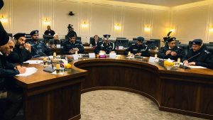 فسانيا : عمر بن خيلب. عقد مدير أمن مرزق اللواء آدم الدرسي، اجتماعًا أمنيًا موسعًا، بحضور المساعد للشؤون العامة العميد عبدالمجيد الرويشدي، والمشرف العام على الخطة الأمنية لشهر رمضان المبارك، إلى جانب عدد من الضباط ورؤساء الأقسام. ويأتي الاجتماع في إطار الاستعدادات الجارية لتنفيذ ومتابعة الخطة الأمنية الخاصة بالشهر الكريم، حيث جرى خلاله استعراض آلية العمل المعتمدة لمتابعة تنفيذ بنود الخطة ميدانيًا، وتقييم مستوى الأداء، والتأكيد على أهمية التنسيق المستمر بين مختلف المكونات الأمنية، بما يضمن تحقيق أعلى درجات الانضباط والفاعلية. كما ناقش الحاضرون سبل دعم العناصر المكلفة بتنفيذ الخطة، وتوفير الاحتياجات اللوجستية والفنية اللازمة لتعزيز جاهزيتهم، مع