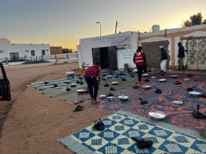 فسانيا : عمر بن خيلب. نفّذ الهلال الأحمر الليبي ، فرع الكفرة، بالتعاون مع المجلس البلدي الكفرة، حملة إفطار صائم استمرت لمدة ثلاثة أيام، استهدفت عابري السبيل، والعمالة الوافدة، والنازحين من السودان المقيمين داخل المدينة. وتم خلال الحملة توزيع وجبات الإفطار على المستفيدين في عدد من المواقع، في إطار الجهود الإنسانية التي تهدف إلى دعم الفئات الأكثر احتياجًا وتخفيف الأعباء خلال شهر رمضان المبارك. وتأتي هذه المبادرة ضمن الأعمال الخيرية والتطوعية التي تنفذها مؤسسات العمل الإنساني في المنطقة، بما يعزز قيم التكافل الاجتماعي ويجسد روح التضامن مع الفئات المتضررة والنازحين.